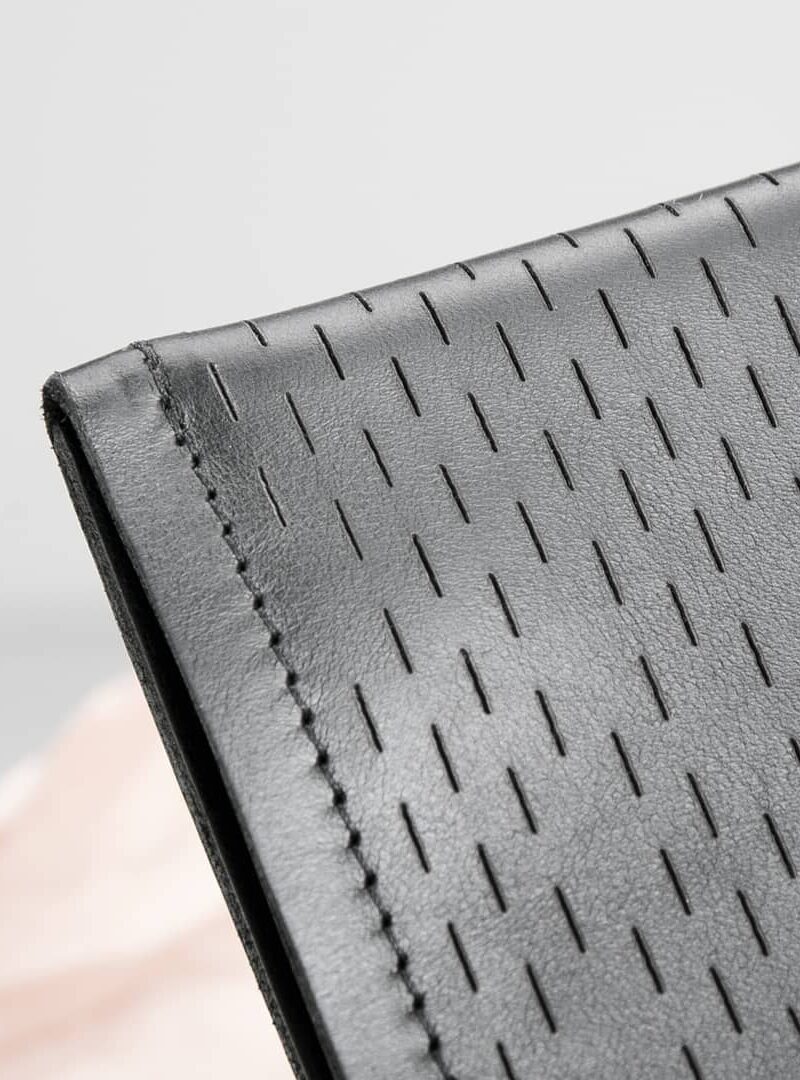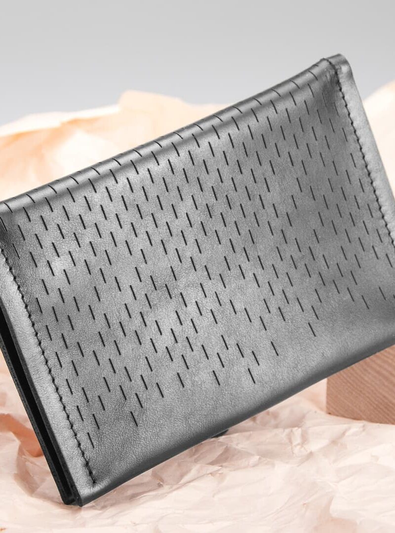For the Conda Slice wallet, the smooth surface of the vegetable-tanned leather from Tuscany has been refined with fine laser cuts. Inside, the zippered compartment opens and closes smoothly thanks to the polished metal teeth in silver and black.