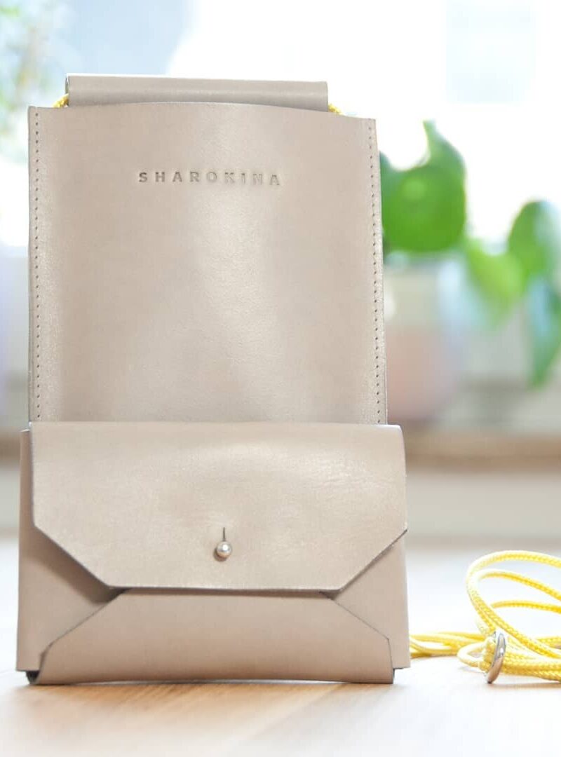 - Innengestaltung: Large cell phone compartment up to approx. 6.5 inch, Mini wallet (e.g. for change & cards), small compartment behind the mini wallet (e.g. for notes)
